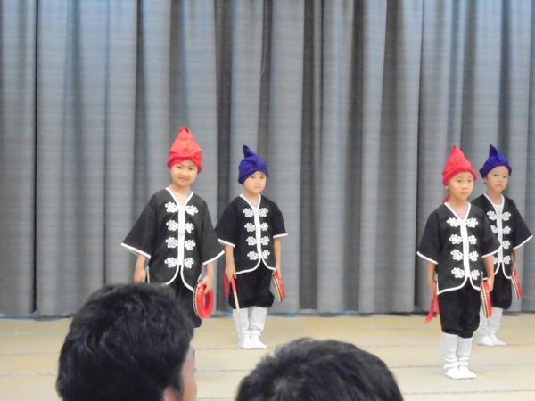 先日、孫が通っている保育園の発表会があり、家族皆で見学に出かけた。世代間交流の一環という発表会は系列の老人施設であり物故者の盆供養も兼ねて行われた。幼稚園児による発表会は年長組による「エイサー太鼓」と「花笠音頭」などの踊りだった。