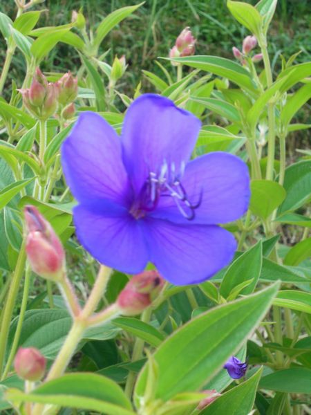 庭の野牡丹(ノボタン)がぼつぼつ咲き始めた。数日前から1輪また1輪と花を開いている。濃い紫の綺麗な花である。すぐに花弁が散ってしまうので花瓶挿しには向かないがなかなかすっきりした花である。冬の寒さに弱いので冬期は剪定をする。春になればまたしっかりした茎を伸ばす。生育は旺盛である。これからしばらくは咲いては散り、散っては咲く、を繰り返す。