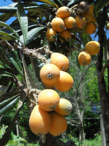 真っ青な空に黄色の枇杷の実は映える。当地ではまもなく梅雨入りの時期になる。