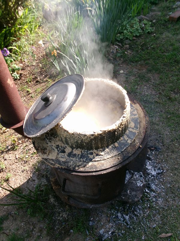 本日午後、そろそろ筍が生え始めたか?と思って裏山(竹林)を覗いてみた。まだ小さめだが16本ほどが出ていた。このうち形の良いものを5~6本ほど家に持ち帰り庭の釜で茹でた。予め用意して置いた米糠と鷹の爪(胡椒)を入れて薪で一気に茹でた。毎年の事だが、筍は初めの1、2回ほどが珍しくて後は始末に困る。孟宗竹は特に繁殖が強いので(隣地に)どんどん侵入して来る厄介モノである。しばらくは筍倒しの日々が始まる。