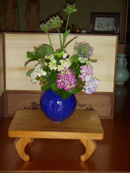 我家の裏山や庭では紫陽花をはじめ梅雨の花々が瑞々しい。目下、花瓶には梅雨の花々が活かっている。以前から少しずつ植えたものだが結構季節季節に活ける花が増えた。今花瓶にはハンゲショウ(半夏生)、ヒペリカム、アガパンサス、アジサイ(紫陽花)などが活けてある。