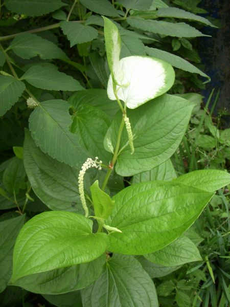 庭の半夏生の葉が白っぽくなって来た。ハンゲショウは片白花(カタシロバナ)とか化粧花(ケショウバナ)などとも呼ばれている。ドクダミ科の花で梅雨の夏至の頃になると葉っぱの部分が半分ほど白くなる。一説では交配を促すため虫を誘うための変化だとも言われている。派手さはないが梅雨に似合う花である。しばらくは楽しめそうである。