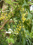 園内道の法面に植えてある柊南天(ヒイラギナンテン)に黄色い花がびっしりと着いている。定年前に偶然園芸店で苗木を見付け植え付けてからかれこれ10年くらいになる。一般のナンテンとは姿形が違う様で何でこのような名が付いたのかは不明である。