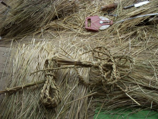 田舎では高齢化で注連縄を作れる人が少なくなり将来に不安を残すが、まずは今年は出来て一安心する。これでお祇園(お神輿、祇園車)が迎えられる。組の最初の行事は道路愛護、山神様の掃除、注連立てである。