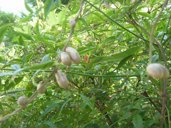 屋敷の横の南天に纏わりついている山芋の蔓の「ムカゴ」がだいぶ大きくなってきた。そろそろ秋だなと思う。暦の上では昨日8月8日は立秋だった。猛暑の中でも赤とんぼが空を舞い、オーシンツクの声がし始め、山芋の実がだんだん大きくなり季節は確実に廻っている。