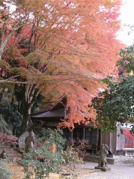 先日、紅葉を愛でようと国東半島の古寺を3つ訪ねた。長安寺は花の寺として知られ寺院としての歴史も古い。かっては国東六郷満山の総山(中心的役割)であった。境内の紅葉は見事だが今年は少し様子が違った。何だか赤色も黄色も今一の感じだった。次に両子寺を訪ねた。山道から総門に至る石段の両脇のモミジのトンネルは素晴らしいのだが・・・、今年はすでに散っていた。境内付近のイロハモミジのみが僅かに艶やかさを見せていた。坊守さんの話では紅葉するのも早く散るのも早かったという。夏の猛暑の影響ではないか?との話をされていた。帰路に立ち寄った天念寺の大銀杏もすっかり葉を落としていた。気候変動がじわりとここら付近にも押し寄せているのだろうか?