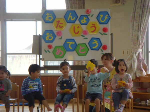 先週末、孫の通う保育園で合同誕生会があり長男の嫁さんから誘われ2人で参観に出かけた。この行事は5月生まれの園児たちを対象にお祝するというものでハピーバースデイの歌や童謡、子供や保護者へのインタビュー、先生方の楽しいお話などがあった。短かい時間だったが楽しいひと時を過ごした。ちょうど「母の日」と重なったため園の誕生会の後は近くの料理屋さんで昼食をする。実際の誕生日は月末だから私的誕生会はその日に改めて祝ってやりたいと思っている。