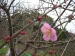 裏山で紅梅が一輪咲いていた。確かこの花は鴬宿という品種だったと思う。朝晩の寒さの中にも少しずつ春が忍び寄っている。