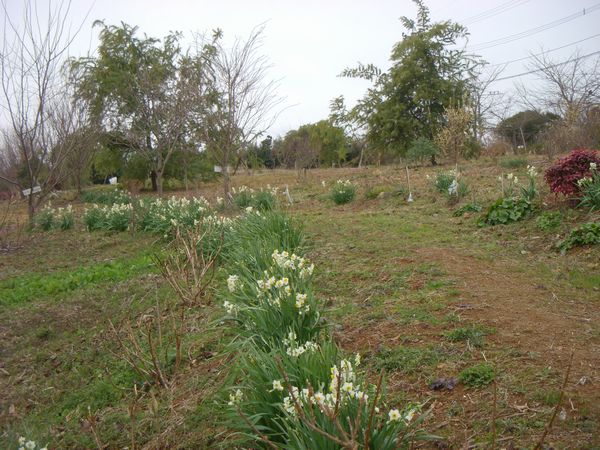 お客さんは小1時間ほど水仙の花切りと裏山の散策をした後、我が家で抹茶を楽しみ昼頃に帰る。帰り際、事前に用意した蜜柑(八朔、晩白柚)や野菜(ダイコン、小カブ、ミズナ、フキノトウ、シュンギク)をお裾分けする。どれも無農薬だから喜ばれる。春野菜の植え付け場所の土づくりをそろそろやらなければと思う。