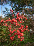 朝晩随分と冷え込むようになりナンテン(南天)の実が深紅に色づいて来た。庭にあるナンテンは難を転ずる(逃れる)ために園芸店で求め植え付けたもの、裏山の南天はほとんど天道生えである。天道生えのものは野鳥の糞に混じり地中から芽を出し繁殖したものだ。品種は赤系のものから黄色の実まで様々あるが深紅のものが一番綺麗である。カチドリやヒヨドリなどは木の実が好物らしくセンダン、ハゼ、センリョウは片端から食べている。ナンテンの実もまもなく無くなるだろう。