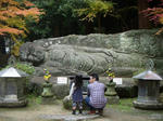 神護寺の境内には多くの石仏や祈祷所、行者の禊場などがある。境内の散策路や道路整備完成を記念して刻まれた石彫りの大涅槃像もある。三々五々、近在のお客さんが紅葉見物かたがた参詣に訪れている。そろそろ紅葉の時期も終わりに近づく。明日からはいよいよ師走に入る。