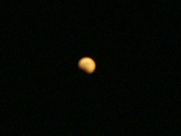10月8日、夜の天体ショーを見た。「皆既月食」である。太陽と月の間に地球が入る際の現象だという。月の欠け初めの頃の写真をデジカメで撮った。望遠鏡でないので大きさは知れている。居間の窓越しに眺めたが、欠け初め~暗くなるまで1時間くらいだったろうか。3年ぶりの皆既月食で次は来年の4月4日だという。
