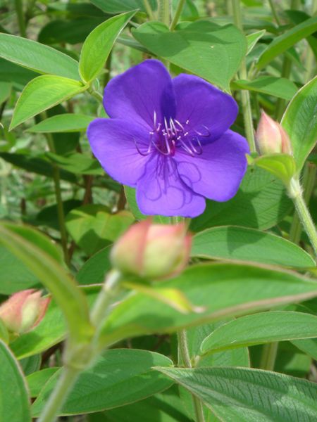 我家の庭にあるシコンノボタン(紫紺野牡丹)の花弁がそよ風に揺れている。ノボタンと名が付いているけれど牡丹の仲間ではない。ブラジル原産のこの花は常緑の低木であるが(当地では)冬季には葉を落とす。厳寒の年だと幹までも枯れてしまうことがあるが、翌春には決まって芽を出す。花期は8月上旬~10月中旬までで次々に花が咲く。花瓶に挿すと一晩で花弁が散ってしまうのが残念である。