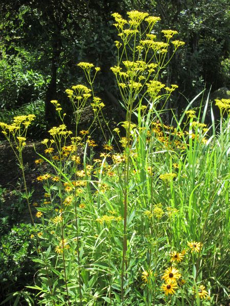 屋敷の端っこに植えてあるオミナエシの花が綺麗に咲いている。オミナエシは漢字で「女郎花」と書く。どうしてかはよく分からない。一説では万葉の頃から愛された花だという。初秋に日当たりの良い山野で咲く。子供の頃は里山でよく見かけたものだが最近はほとんど見かけない。草丈はおよそ1mくらい、数本の茎を地上から真っすぐ伸ばし、先に多数の黄色い小粒状の花が着く。先年園芸店で求め植え付け今は株になっているので毎年同じ場所から芽を出し花を咲かせる。