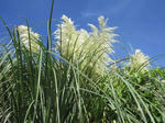 裏山に植えているパンパスグラスが今年も白い穂を風に靡かせ始めた。青い空とのコントラストが何ともいえない。この情景を見るといよいよ秋が来たな~と感じる。隣の銀杏の樹の実がいくぶん黄色味を帯びて来た。そろそろ実りの秋到来である。厳しかった猛暑の夏が終焉を迎える。