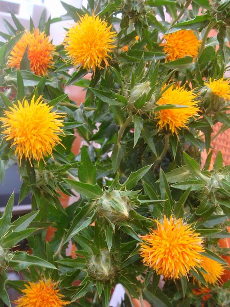 早朝に隣町に住む親戚のMちゃんが軽トラックで玄関先に乗り上げて来た。ベニバナ(紅花)が咲いたので床の間でも飾って欲しいと言う。数年前から栽培しており少しは近くの物産店に出荷をしているらしい。Mちゃんは多趣味である。目下、ニホンミツバチと紅花に凝っている。聞けば、ベニバナは口紅や染料などとして用いられる。キク科の植物だが見た目にはアザミのようなギザギザ葉が特徴である。山形県が主産地であり山形の県花になっている。現在ではサクランボに次ぐ主要な特産品の1つになっている。