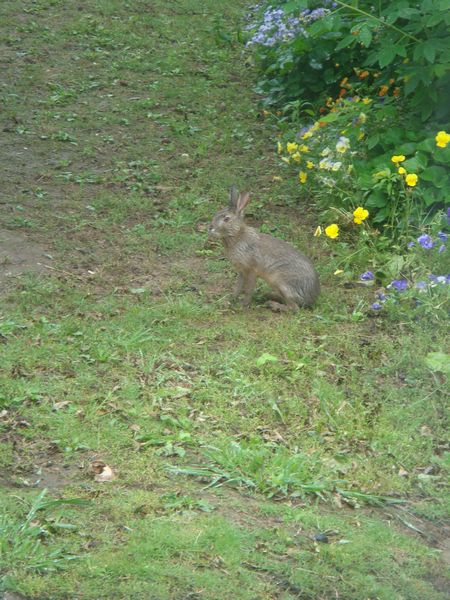11時頃に少し小雨模様になったので家に帰り軽作業を行っていると庭に野兎(のうさぎ)がちょこちょこと入って来た。思いもかけぬ不意の珍客である。