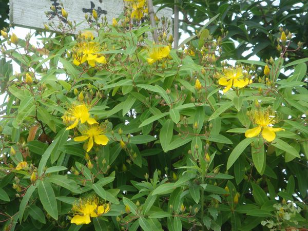 裏山で美女柳(ビジョヤナギ)が綺麗に咲いている。半常緑低木で樹高は4~50cmくらいである。別名を美央柳とか金線海棠などとも呼ばれる。金糸梅によく似ているがオトギリソウの仲間で原産地は中国だという。むこうでは金糸桃と呼ぶらしい。葉が柳に似ていることから美女柳の名前が付いたらしい。長いおしべが花からはみ出すように咲くのが特徴で澄んだ黄色の花弁は辺りの緑に映える。