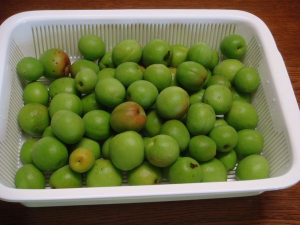 裏山の梅の実が大きくなったので収穫を行った。2ケ月ほど膝関節と腰痛で裏山にも上れなかったが先週末よりようやく園内を散歩が出来るまでになった。園内の道は長男が草刈りをやってくれたので歩きやすい。梅の収穫は日中の暑くない時間帯に夫婦2人で行った。今年は6kg程度漬けたいと張り切っている。収穫道具は先日園芸店から買って来た子供用の虫取り網を使った。梅は白加賀梅、鴬宿梅、豊後梅など全部で10本程度ある。一番晩生が豊後梅である。今年は自家用分を採った後は友人に少し分け、残りは裏山へ直接もぎに来てくれる人にあげるようにしたけれど(最近は)梅を焼酎に漬けたり梅干にしたりする人がだんだん減っている。昔は弁当には梅干が付きものだったがこれも時代の流れだろう。