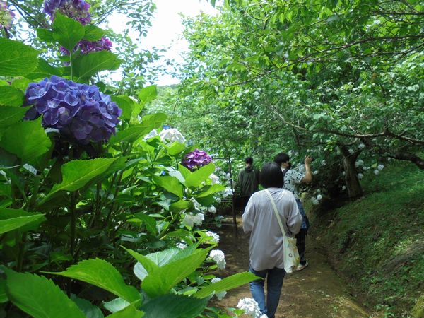 梅雨の晴れ間、我家の裏山ではアジサイが綺麗に咲いている。今年も隣県N市にあるNPO法人のS学園から数人写真部の生徒さんが訪ねて来た。3月のミモザアカシアに続いて今回はアジサイを写真に収めるためである。皆さん立派なカメラを持っている。今回もまた良い写真が撮れれば良いがと思う。裏山は雨天だと足元が悪い。滑りやすいので心配をしたが幸いに天気が良かった。