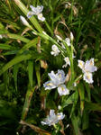家の周囲のシャガの花が咲き始めた。アヤメ科に属する常緑の多年草である。林の中や木陰でやや湿った場所に適する花である。根茎からつぎつぎと「ほふく枝」がでて繁殖する。花は実に短命で1日くらいで萎むが沢山の花を次つぎ着け咲いては散る。白っぽい紫の花は可愛くアヤメに似ている。