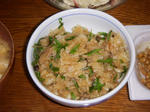 夕方隣町に住むDさんが「山菜おこわ」とポテトサラダを持参してくれた。今日は終日雨で(筋を痛めていることも重なり)買い物にも出かけず家でじっとしていた。さっそく夕飯にいただく。Dさんによれば山菜おこわの材料は春の木の芽「コシアブラ」だという。コシアブラはウコギ科の樹で山野に自生する。成長すると樹高は10mを超える高木になる。春のこの時期の新芽はタラノメと同様に貴重な山菜である。Dさんのご主人は毎年この時期になると山に入り採って来るのだという。毎年どこにあるか位置を把握しているのだろう。