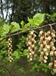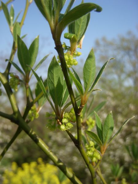 裏山に2本植えてあるクロモジ(黒文字)が目立たぬように小ぶりの花を着けている。植えてから樹齢は4,5年になる。樹高は2mを超えて今年は枝にびっしり淡い黄緑色の花がある。クロモジは高級楊枝(ようじ)の材料になる。クスノキ科に属しており枝を折ると芳香がする。幹や枝は所々に暗緑色の斑点が入っている。それが「黒文字」とよばれる名前の由来になったのだろうか?