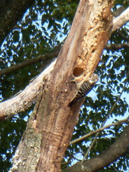 数日前から玉葱の中の草取りをやっていると頭の上でコツコツコツコツと絶え間なく音がしている。上を見上げてみるとコゲラ(キツツキの仲間)がせっせと巣づくりをやっている。楠木の大きな枯れ枝に穴をあけ近づく春の繁殖期に備えマイホームの建設に勤しんでいるのだろう。4~5mくらい下から眺めるのだがこちらを察しても逃げる様子もない。体長はスズメの大きさ(15cm)くらいだろうか?頭の部分が黒茶色で背中は白い細かい筋があり全体的に斑になっている。ギーギーとかキツキツといったような鳴き声で忙しく付近を飛び交っている。抱卵の時期は少し暖かくなる3月くらいだろう。