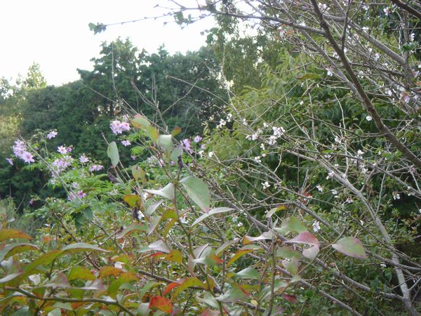 裏山では年間を通し何らかの花が咲くよう果物や花木を植えてある。晩秋の今もミツバチが巣箱の回りを飛び交いせっせせっせと蜜を運んでいる。Mちゃんによれば西洋蜜蜂と違ってニホンミツバチは数が少なく野山に生息するが10箱設置して2箱くらいの確立でしか箱に付かないらしい。我家の裏山では4箱置いて2群が出入りしているので効率はすこぶる良い方だ。今夏はスズメバチの襲来を度々受けつつも何とか凌いだ。もう今はスズメバチも現れなくなっている。