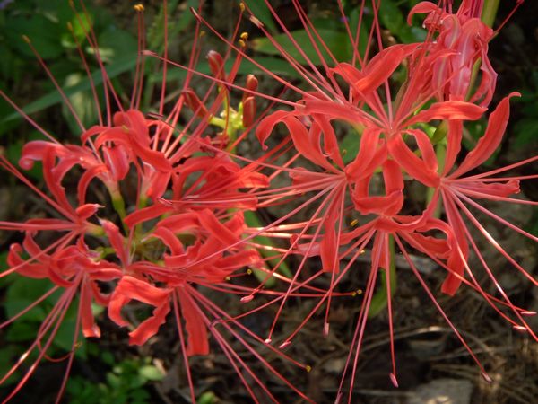 秋が少しずつ深まって行く。曼珠沙華(マンジュシャゲ)の花がが真っ赤に咲いている。ヒガンバナの花は田舎の棚田での風景と良く似合っている。