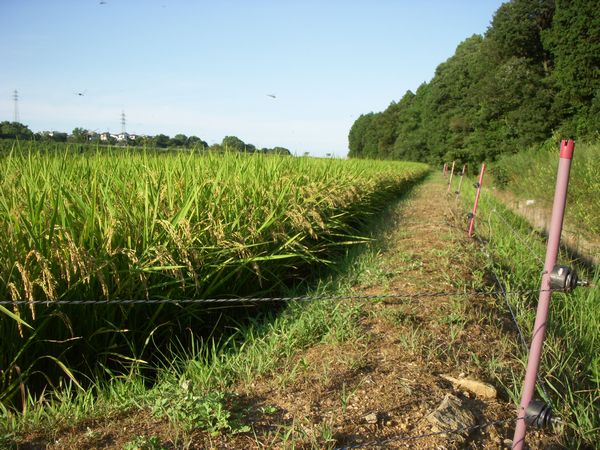 収穫の時期を前に稲穂がずいぶん頭を垂れて来た。今年の稲の管理ももうしばらくとなり朝晩の田回りは日課になっている。先日から周辺でイノシシが出没している。数日前油断して電気を入れてなかったところ線をぶち切って田んぼに侵入。小規模ではあるが田んぼを踏み荒らしていた。急遽、新しい電池を交換し強力なやつに入れ替えたのでここ数日は被害なしの状態が続いているが…相手も必死だから油断が出来ない。当分はイノシシとの戦いが続く。