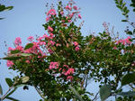 百日紅(サルスベリ)の花が咲いている。中国原産のこの花は花期が長い。7月中旬から10月初旬まで楽しめるのだが、花は咲いては散りその先の芽からまた花が咲くと言った具合である。猿滑とも書くが幹がつるつるですべすべしているので猿も樹に登れないということから花の名が付いたとか、3ケ月近くにわたって花が咲くので百日紅の名がついたとかいろいろな説がある。我が家のは紅色の花だが、白系、ピンク系、深紅系と多岐にわたっている。この花が咲くと当地では抜けるような空の蒼とジリジリとした猛暑がやって来る。今まさにその時期である。