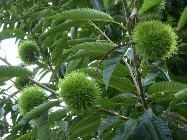 裏山の栗の樹の毬(イガ)が大きくなった。早生系の栗は9月中旬には収穫期を迎える。今が一番養分を貯蔵している時期だろう。先日、猛暑の中クリ園の下草を刈った。樹齢が10年近くなり樹冠が広がったので一時期に比べ雑草の繁茂は少なくなったがそれでも年2~3回の草刈りは欠かせない。毎年のことながら5月~8月いっぱいにかけては田んぼの草刈り、裏山の畑、樹園地の草刈りと雑草との戦いは大変である。腰痛を我慢しつつ…あともう少し頑張らねば。