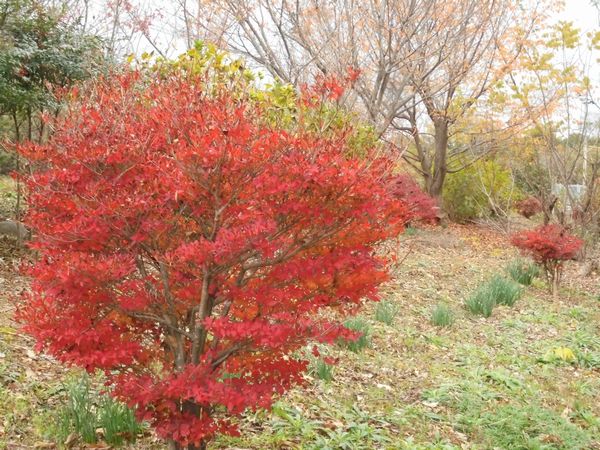 写真は2、3日前の我家の裏山の「ドダンツツジ」である。初冬にも関わらず紅色の葉が艶やかに際立っていた。横のホウバやトチノキはとっくに葉を振るっていた。ドウダンツツジは植えてから十数年経つのだが丈はなかなか伸びない。今回の寒波で恐らく落を落とすだろう。