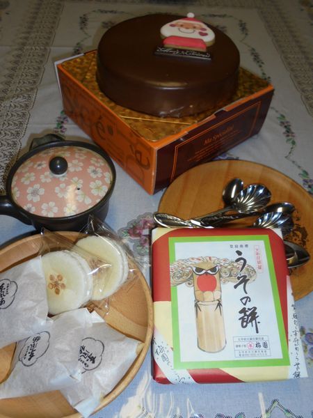食後デザートはチョコレートのケーキと太宰府の老舗菓子舗の「うその餅」などにした。眞に和洋折衷の団欒。ほとんどがキリスト教徒ではなく、何でも楽しければ良いというのが大方の人々の考えだろう。