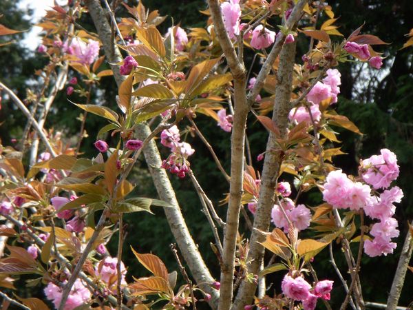 屋敷すぐ裏手にある八重桜が咲き始めた。4、5年前に安売りの園芸店で衝動的に買い求めたものだが…意外と系統の良い綺麗な品種だった。