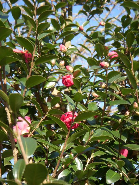 毎年のことながら…これらの剪定が終わると新年のスタートである。年が改まり…何となく陽光は春のきざしを感じる。ヤブ椿の赤い花もぽつぽつ蕾を開きだした。伊豆大島の椿まつりもそろそろである。