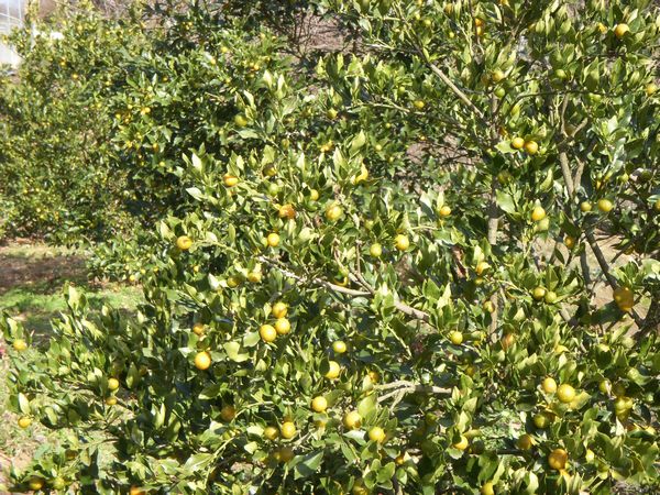 栗園のすぐ隣の柑橘園では金柑の実が少しずつ熟しはじめている。果皮は年末くらいから十分食べられるが中はまだいくぶん酸っぱい。今時期の果実は甘露煮用として友人知人に届けている。