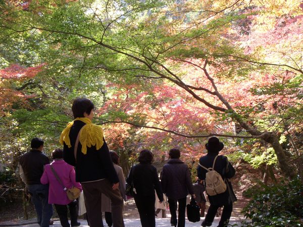 平日ならばいくらかお客さんも少なかろうと平日に訪ねたが…どうしてどうして麓から数珠つなぎ状態で庭園は人・人・人…芋を洗うような状態だったが、さすがに周囲の紅葉は見事なものだった。春の新緑の頃にも期間限定で一般公開されるという。横には仁比山神社がありここも紅葉名所で訪れる人が多かった。