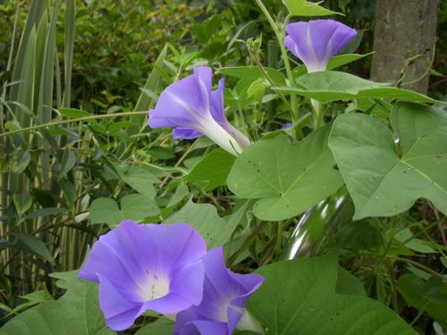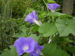 朝顔が庭のあちこちで咲き出した。昨今ではゴーヤなどと共に朝顔はグリーンカーテンとしても流行っている。朝の冷気を吸い込んで咲く朝顔の花は凛としている。俳句の世界では…朝顔は秋の季語になるらしい。