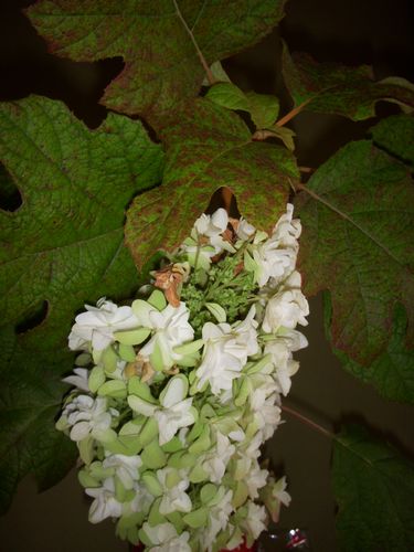 過日、近所のマトチャンが訪ねて見えた。手に何か枝を携えて…見れば(かねてより欲しいと思っていた)柏葉あじさいの花である。カシワバアジサイの原産地は北米大陸だという。日本のあじさいとは姿も形も異なるが…アジサイ科の仲間に入るらしい。葉っぱが柏の葉に酷似している。花は白クリーム色で円錐形、穂状に着いている。葉っぱの形から「カシワバアジサイ」という名が付いたらしい。さっそく、挿し芽をやろうと思う。順調にゆけば2年先には立派な花を着けるだろう。