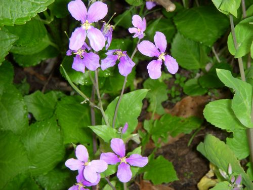 野良のあちこちで諸葛菜(ショカツサイ)の紫の花びらが風に揺れている。我家では数年前から道端の株を少しずつ失敬し(移植し)増やしているが…その花が今を盛りにあちこちに咲いている。この花は別名をムラサキハナナとかハナダイコンなどとも呼ばれる。