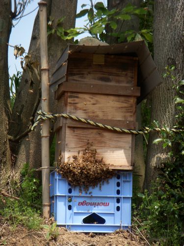 昨年から裏山に4~5箱置いてある蜜蜂の巣箱に今年日本蜜蜂が付きだした。菜の花、アカシアなどの蜜を求め営巣、群がっている。日本蜜蜂は地域の里山に生息している昔からの種(蜜蜂)だが、最近は環境の変化や天敵の出現でとみに少なくなって来た。ニホンミツバチの行動範囲は1~2kmくらいだと言われている。野菜や果物などの花交配、結実には欠かせない存在だ。何とかこのまま居付いてくれればと願うが…うまく行けば天然の蜜も採れれば良いのだが。