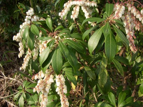 7、8年生に植え付けた裏山のアセビが今を盛りに咲いている。馬酔木と書いてアセビと読む。アセビは馬が葉を食べると気分が悪くなったことから名づけられたという。本州、四国、九州と広く分布するこの低木樹は3~5月頃まで長く花が見られる。奈良公園では鹿が低い樹木を食い荒らすが…この樹の葉だけは食べないので周辺には馬酔木の樹が多く残っているらしい。秋に稔る果実も有毒だという。ツツジの仲間になるという。