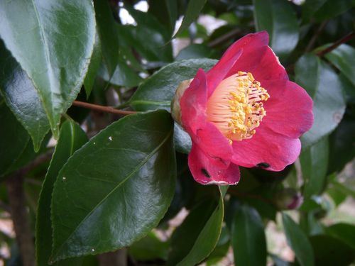 裏山の木漏れ陽林の中にある「藪椿」が数輪ずつ開花して来た。種類は当地の山野で良く見かけるヤブツバキである。およそ派手さはないが…冬の寒にもめげず林間でひっそりと咲く。緑色の羽をしたメジロの群れが花の蜜を求めて飛来する日はもうまもなくだろう。