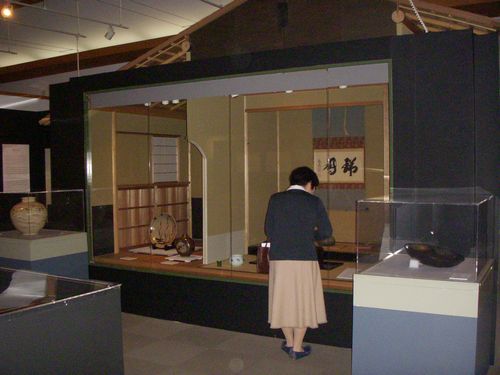 今回も茶席には我が家の茶花(開炉つばき、初嵐、照葉(黒蝋梅)、菊など)を切って持参した。いずれも数年前に植えたものだが最近は茶席で何とか使えるほどになった。G先生も毎年夏と秋に開く茶席では(我が家の花を)楽しみにされているようだ。学園祭茶会の帰途、ついでに小倉城庭園で開かれているという「茶の湯のうつわ展」を覗く。中は茶陶展示のほかに立礼(茶席)も設けられていた。うつわ展は旧小笠原藩や小倉城庭園所蔵の品々をメインに、唐津焼、上野焼、高取、企救、萩、薩摩、肥後八代などの焼き物(西日本を中心とした)が多岐にわたっていた。中で興味を引いたのは「薩摩焼」の皆具類(建水、水指、茶勺たて、蓋置き)と大壺で(それは)沈壽官氏の手になる焼き物だった。大壺は鶴の描かれた重厚なものだった。