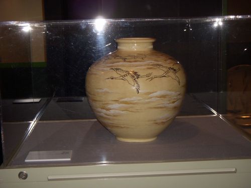 先月から歯医者通いをしており(待ち時間があるので本を持参し)司馬遼太郎の「故郷忘じがたく候」という短編小説を読み終えた。それは朝鮮全羅北道あたりの陶工集団が16世紀末に薩摩藩の島津氏に招かれ優遇されて苗代川(今は美山という地名らしい)という地で開窯。以来、藩公お抱えの陶工として重用されて陶器を焼き続け、後に世間で言うところの「白薩摩」、「黒薩摩」、「御前黒」などといった秀品を世に出している。その末裔である沈壽官氏は現在は15代目。小倉城庭園所蔵の展示作品の中に第14代沈壽官氏のものを見つけ驚いた。ごくごく最近読んだ小説モデルになる一党の名品を偶然に(かつ)こんなに身近に見れるとは…何だか不思議な気持ちであった。