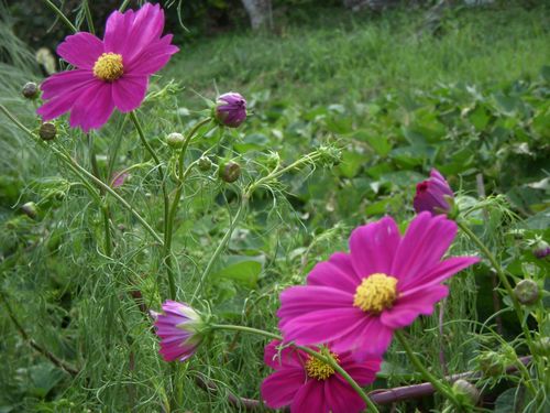 裏の畑の端っこで(毎年天道生えで)芽を出すコスモスに今年も綺麗な花が咲いた。秋野菜の植え付けなど農作業の合間、風になびく花を見るとほっとした気分になる。花びらは深紅、ピンク、白系など数種ある。近隣の町々でコスモスに関する催しものの記事が目につくようになったがコスモスは澄み切った碧い空と涼風が似合う。しばし過ごしやすい季節を楽しもう。