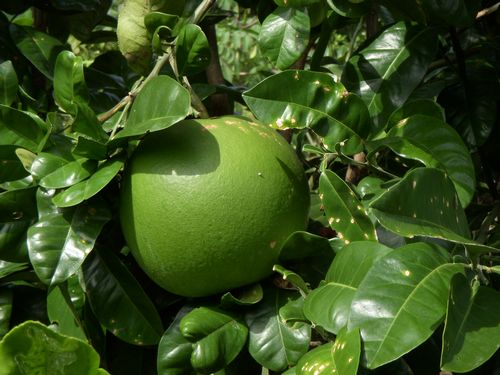 退職の年に植え付けた「晩白柚」が初結実した。まだまだ生育途上の樹だが今年は2個の大きい実を着けている。本来、晩白柚は暖かい地方に育つものだが…昨今の温暖化の影響か?当地でも十分育つようになった。これからは年を追うごとにたくさん収獲されると思われる。知人友人にお裾分け出来るのはあと4、5年後だろうか?