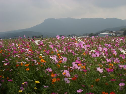 秋も次第に深まりコスモスの花が咲く季節になった。昨日、旧三光村(現在中津市)にあるコスモス園を見学に出かけた。総面積23haで2千4百万本が咲き乱れるというコスモス畑は壮観で見事である。夏の乾燥が原因だったのか?今年は若干花期が遅れ気味だという。ここいら一帯は八面山麓から連なる段丘平野である。コスモス園は(ここの)休耕田を利用(毎年ブロックローテーションで)し地域総ぐるみで取り組んでいるらしい。これだけの取り組みというのは地域の皆さんの気持ちが1つにならなければ出来ないこと。リーダをはじめ運営スタッフの方々の努力、熱意に敬意を表したい。最近は地域の自治体も応援し(今年は)「コスモスガール」を3人選びキャンペーンを繰り広げたり、駅からは無料のシャトルバスなどを出すという。祭りは10月9日~11月3日までとなっている。近いので盛りの頃に今一度機会があれば出向きたい。